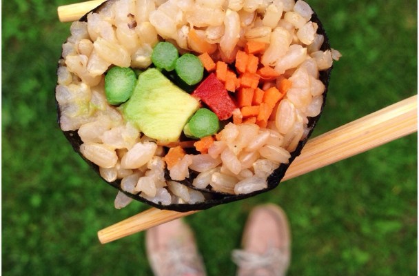 Sushi sandwiches – my favorites way to stuff a bunch of goodies into a ball of sushi rice and wrap it tightly in nori for easy transportation to the beach.