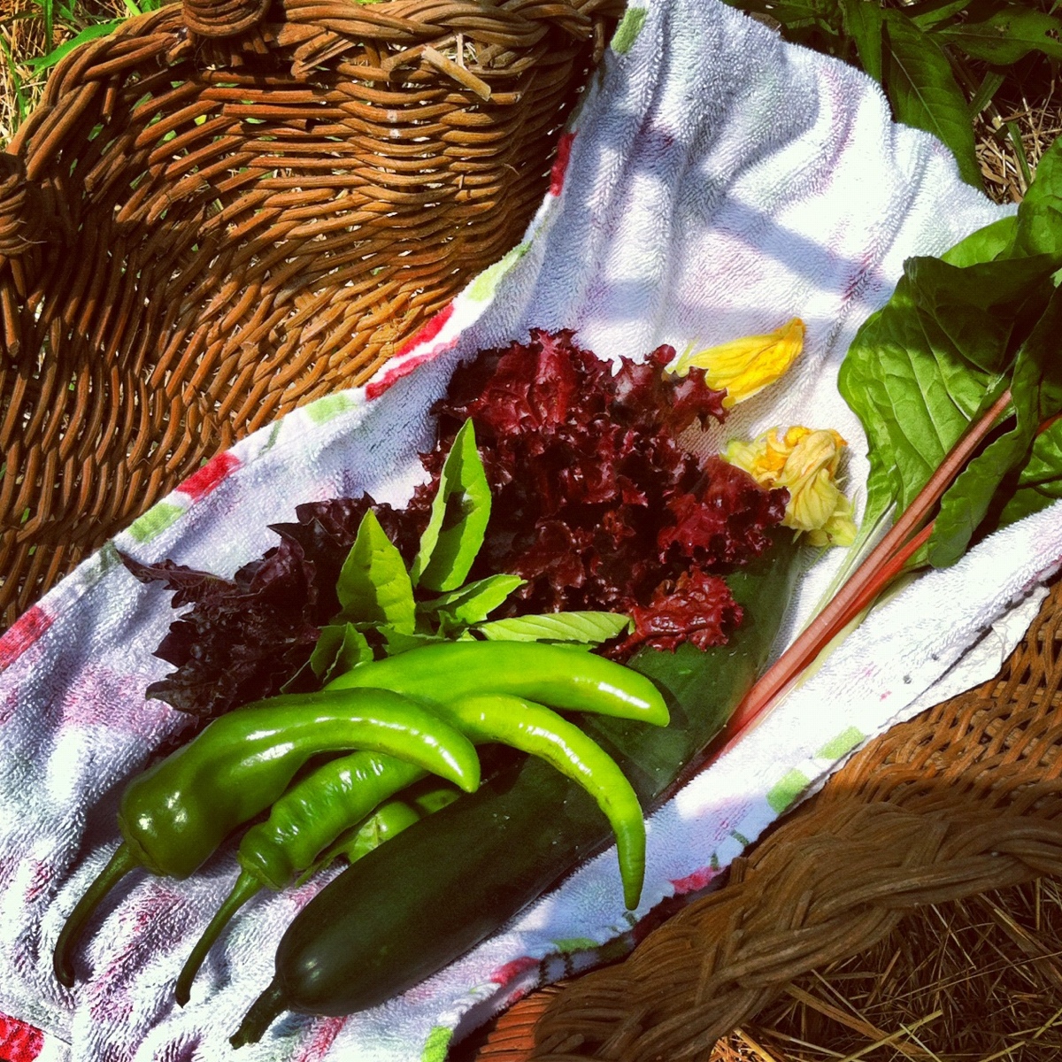 Today was the first day that I actually filled up a basket from my garden rather than just sitting out there and eating everything off of the plants. Lol. I fried the zucchini blossoms, something that reminds me of being a little kid at my Nana’s summer house in Sound Beach. We used to pick the blossoms, dip them in batter, fry them quickly and sprinkle them with salt and pepper. The best treat! A savory little bite with a little zucchini taste to it. My mom & dad called me and told me they made them the other day and I couldn’t resist going out today and picking some blossoms today. I have 4 different types of basil in my herb garden this year. We found a lime basil and it’s amazing! Seriously unique and delicious flavor. I muddled it with a little sugar and drank it with some seltzer. Yum!