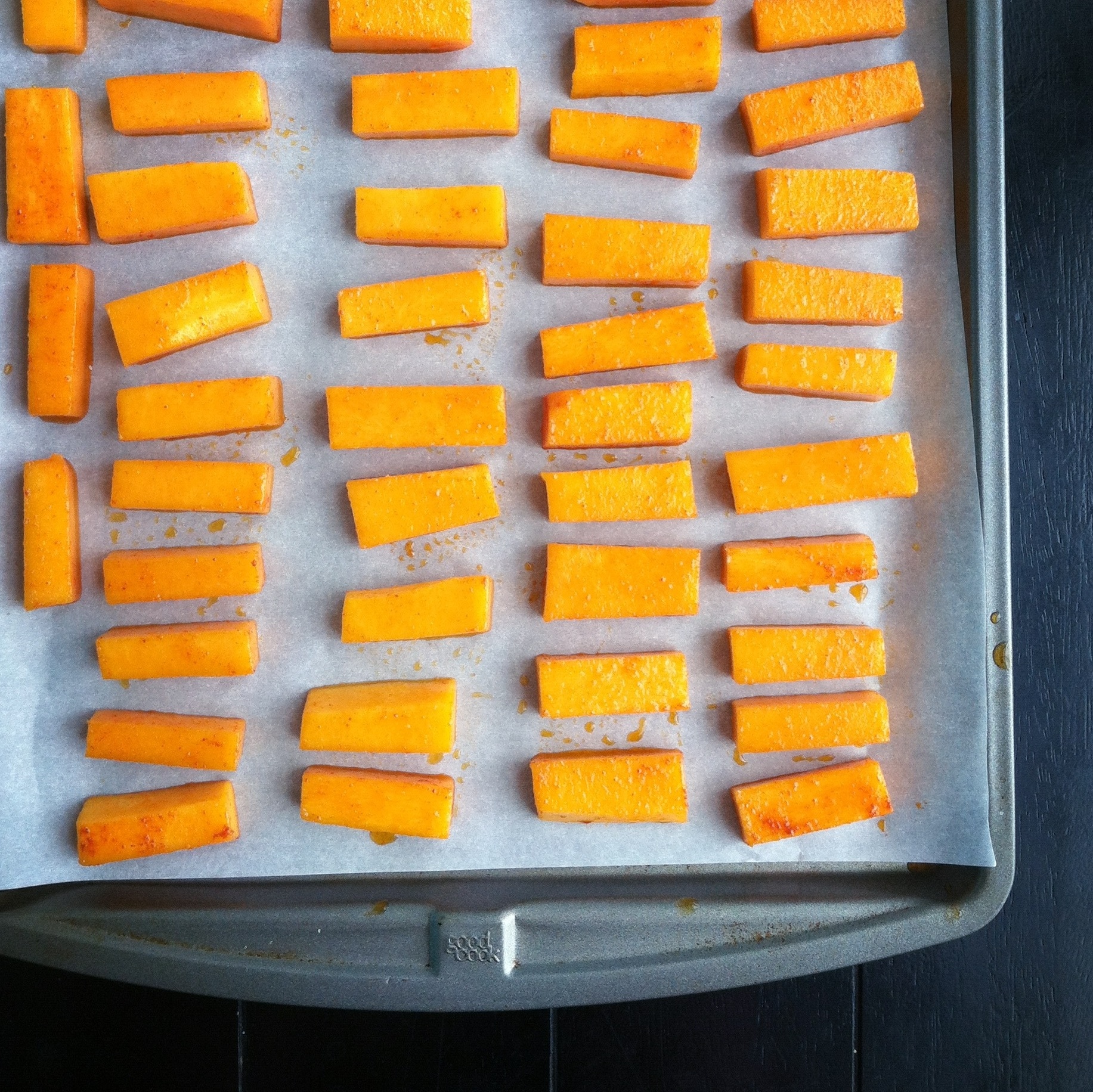 Since I had the oven on with an empty shelf, I also roasted some beautiful local butternut squash. Tossed it with smoked paprika, olive oil and salt. Mmm.