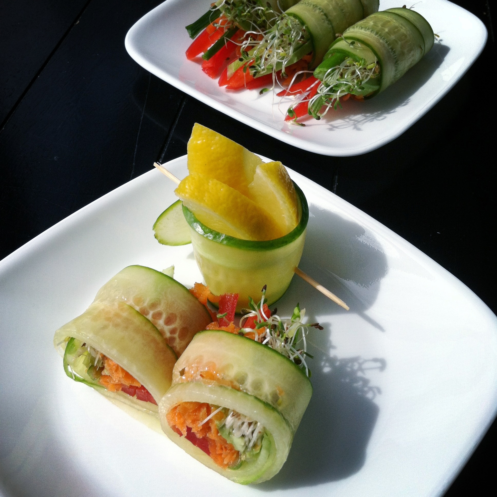 You can also use very thinly sliced jicama, kale, swiss chard, collard greens, nori or cabbage as your wrap.