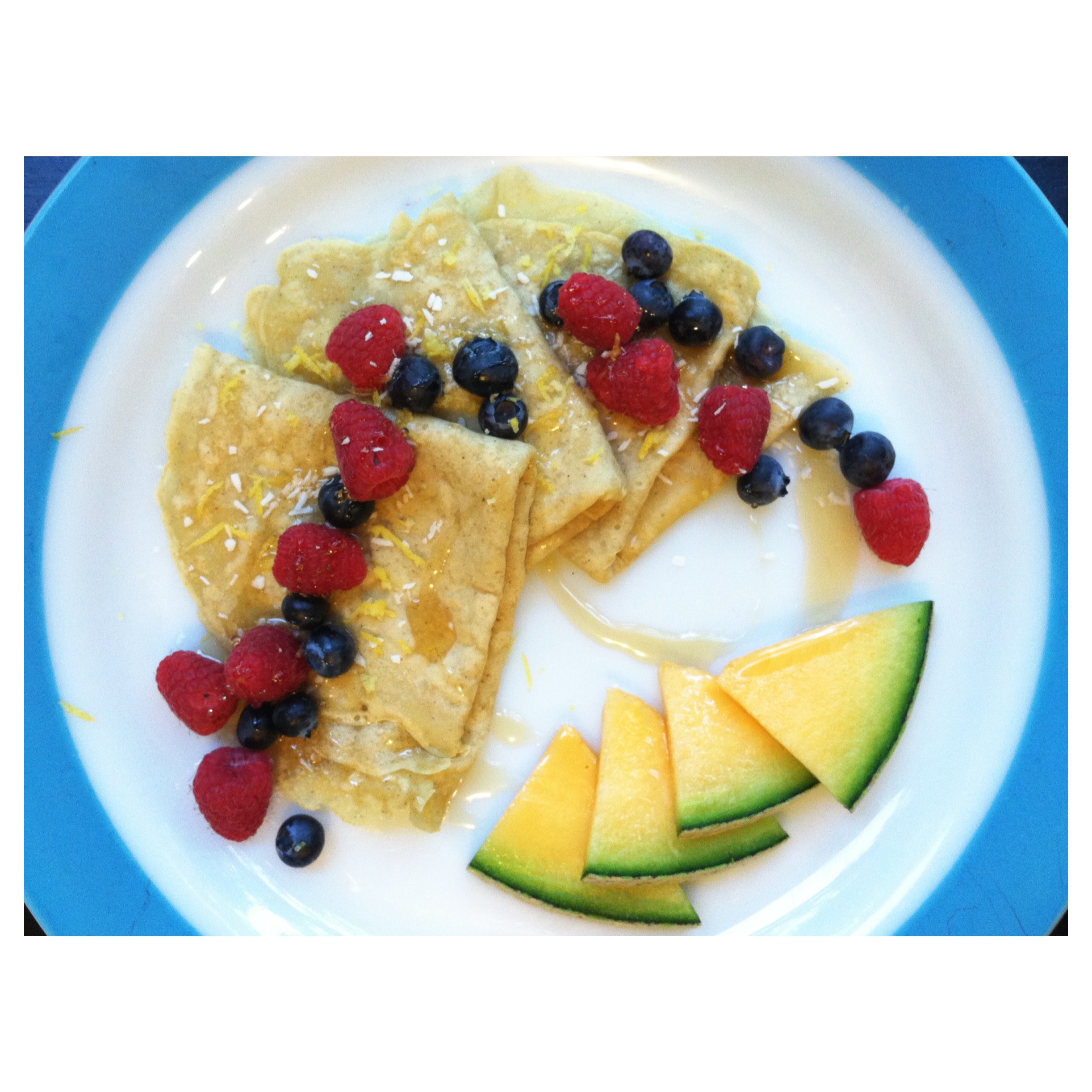 We made some GF pancakes late last night that actually reminded me more of crepes than pancakes. I figured we might as well have the real thing for breakfast.