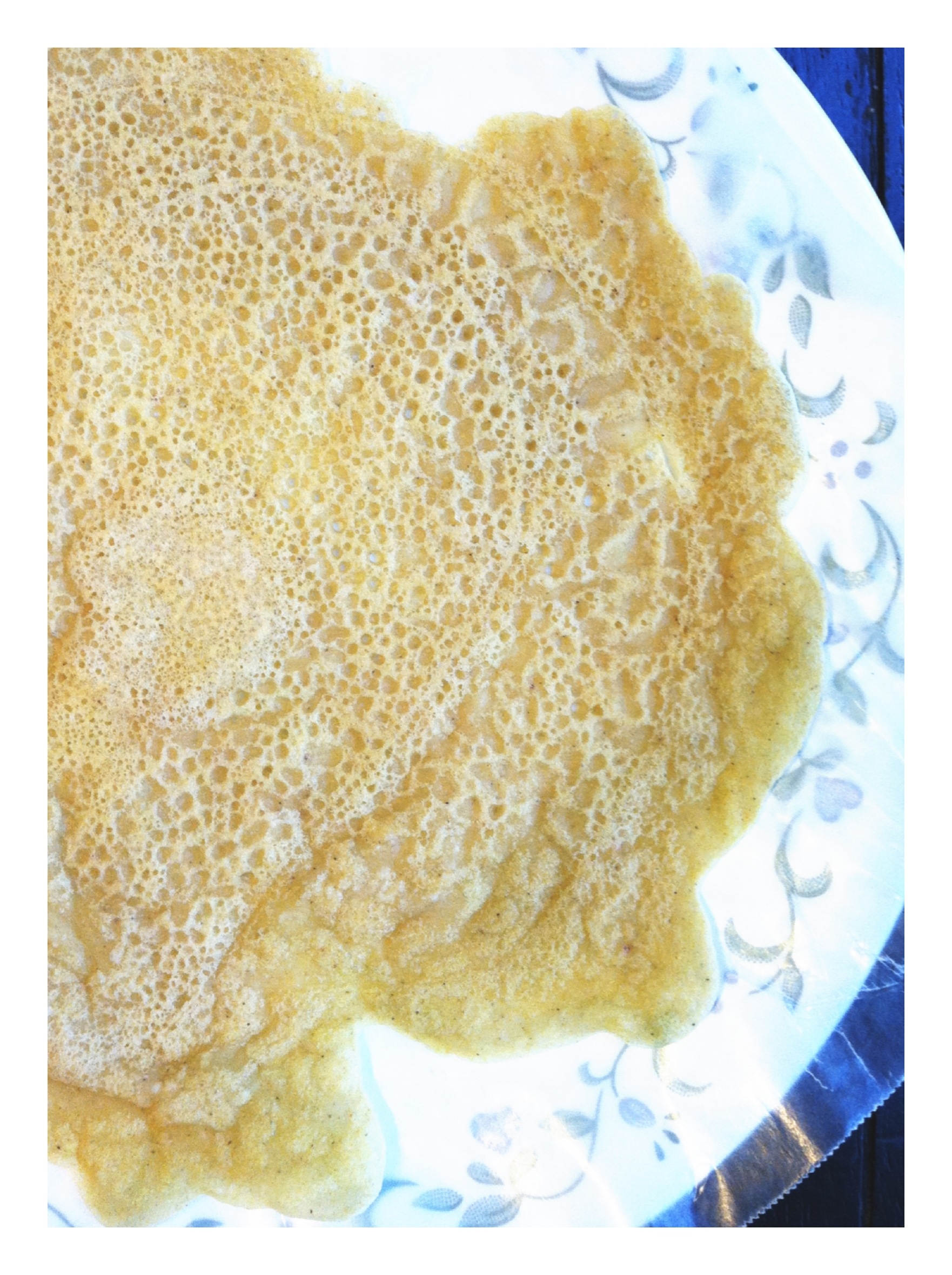 Flip either with your fingers by gently lifting up one side of the crepe or use a spatula (I use my fingers).