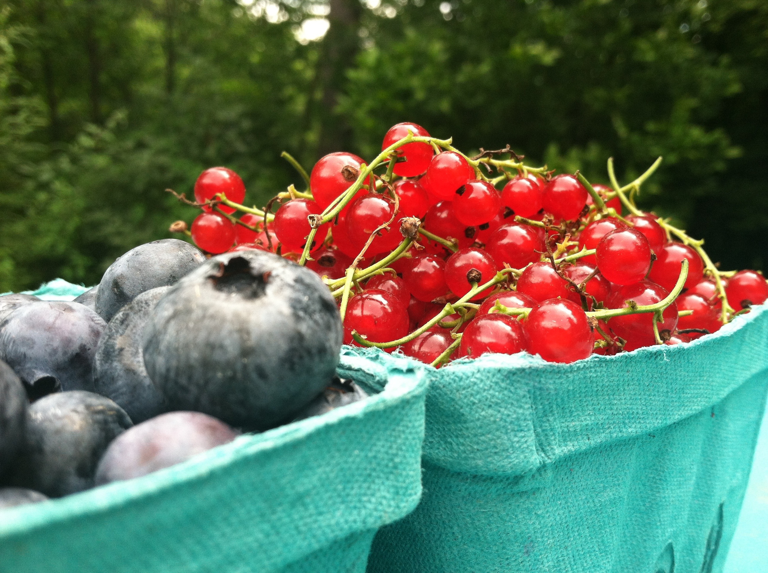 I am a sucker for local fruit. I saw these shiny, red currants at the farmers market and knew immediately I had to have them. Blueberries too because why the hell not.