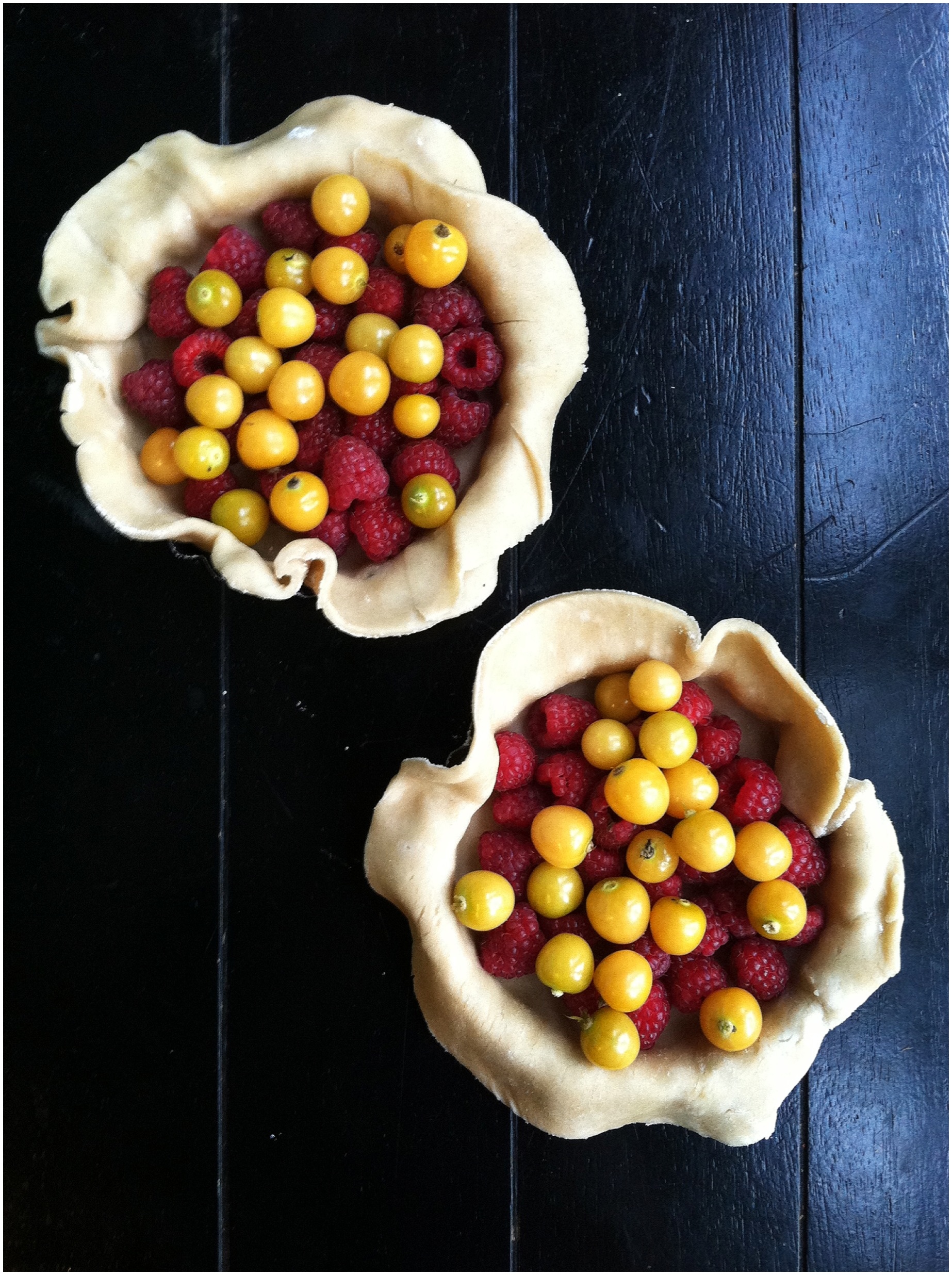 I made them pretty rustic, just folded the extra crust over around the outside, nothing fancy. The taste of the raspberries and the husk cherries together was a perfect combination. I will definitely be making these beauties again!