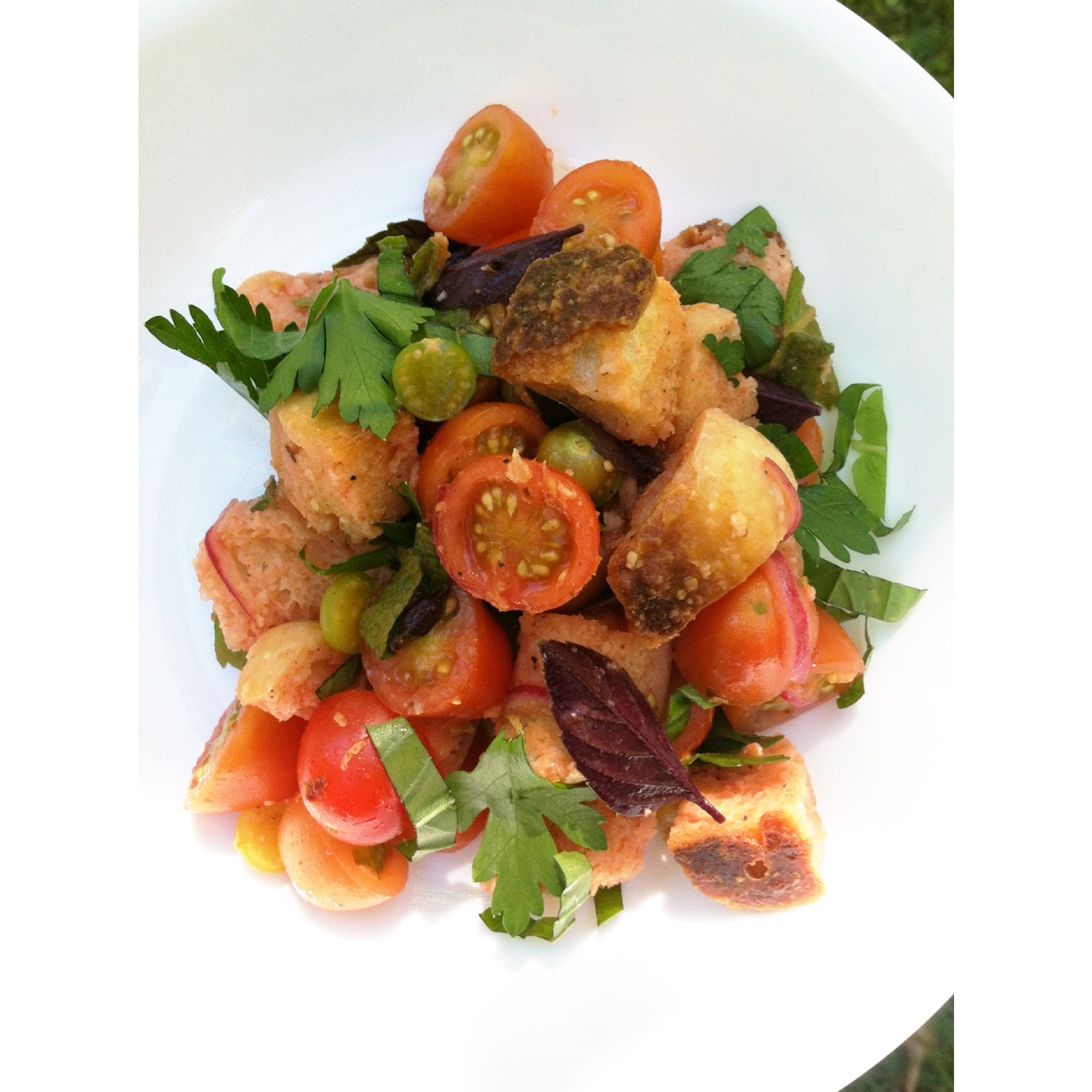Herb Panzanella with Husk Cherries & Tomatoes.