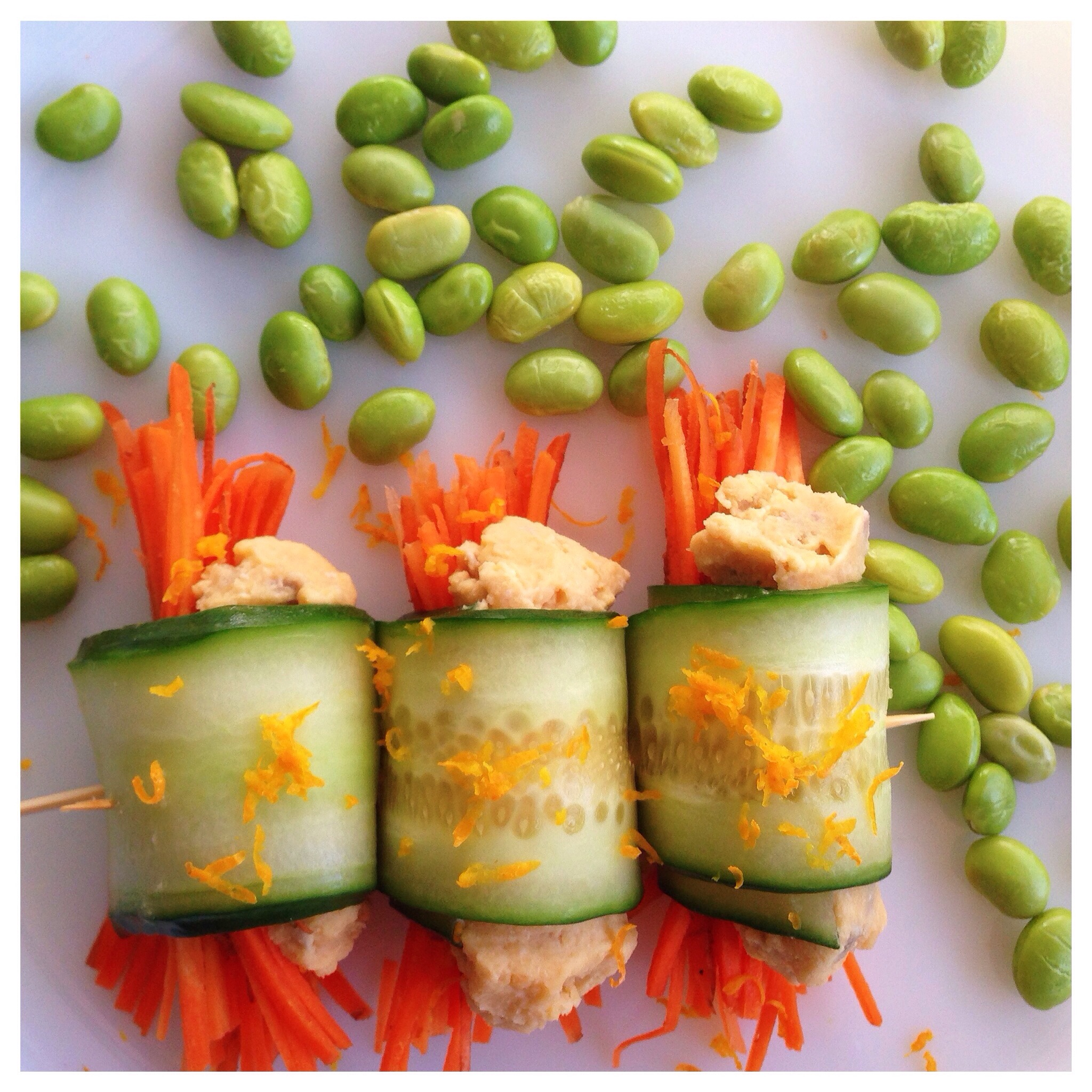 I wanted a creamy dip but I didn’t want to use cashews. I wanted something lighter, so I opted for chickpeas. Hummus is something I can eat all by itself because of my pure love of chickpeas but this goes great with veggies rolled up however you like it.