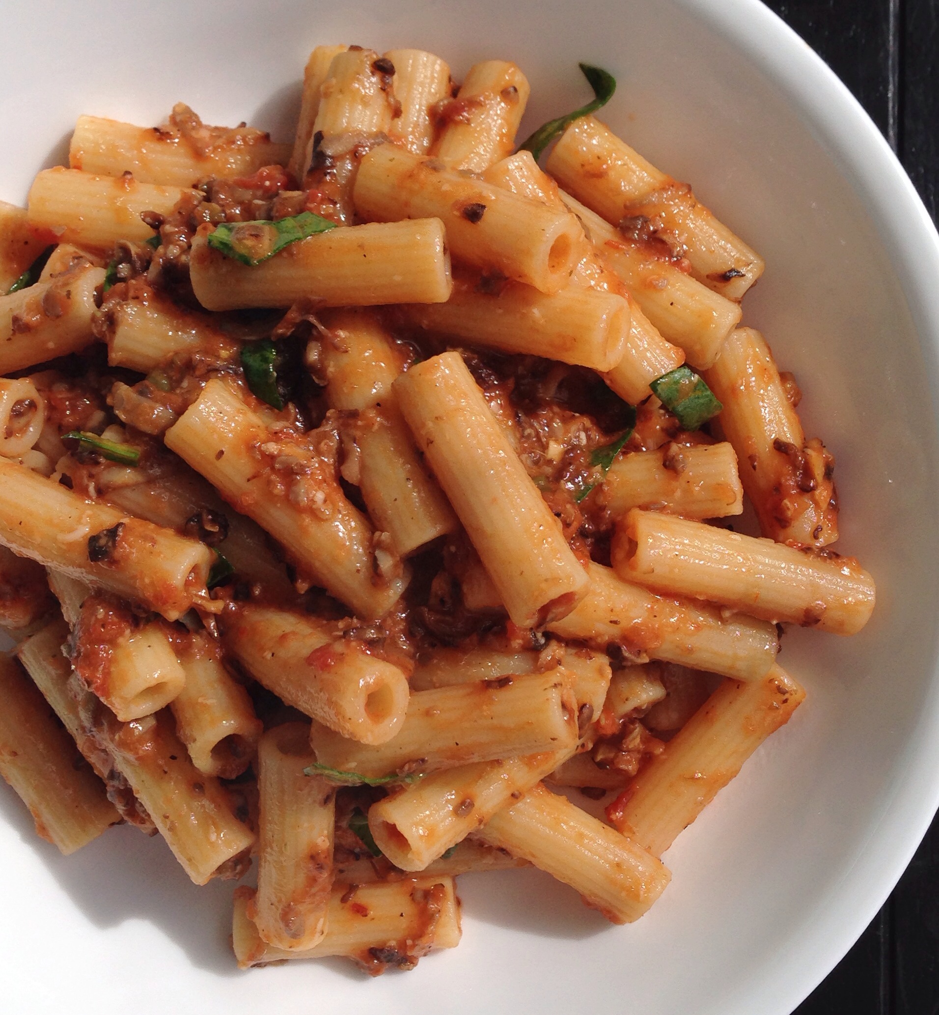 Pasta with Crispy Mushroom & Garlic Crumble.