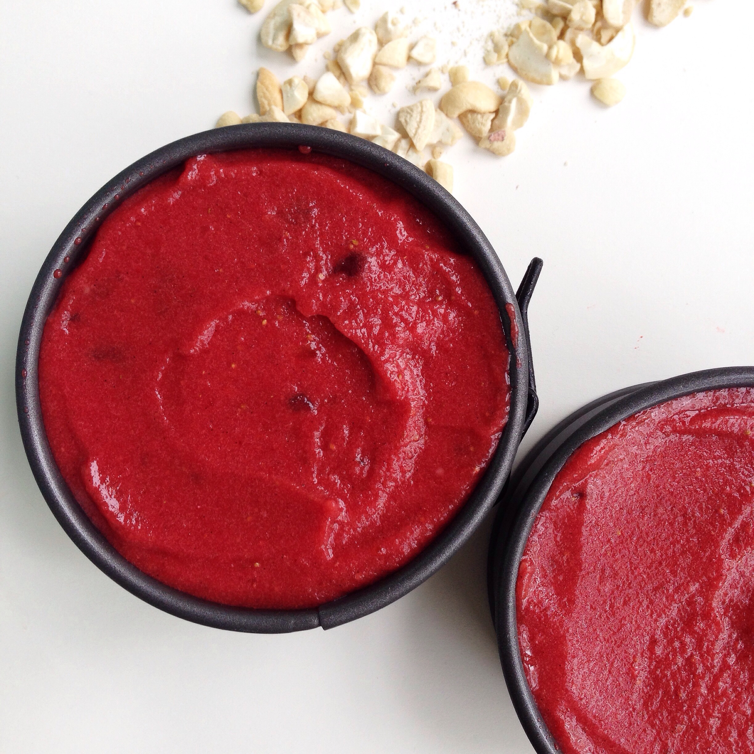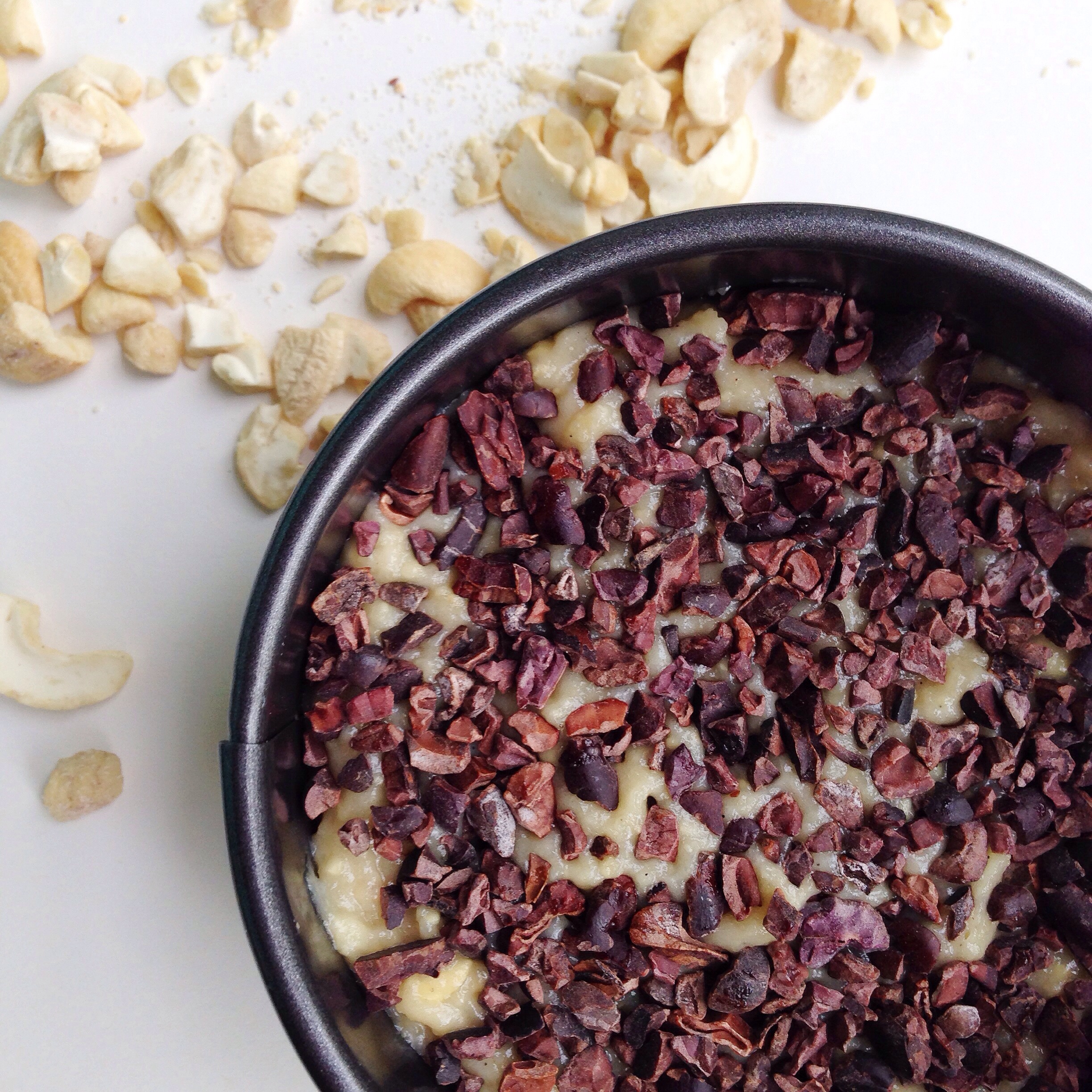 I added the cacao nibs in between the cashew cream and strawberry & date layer.