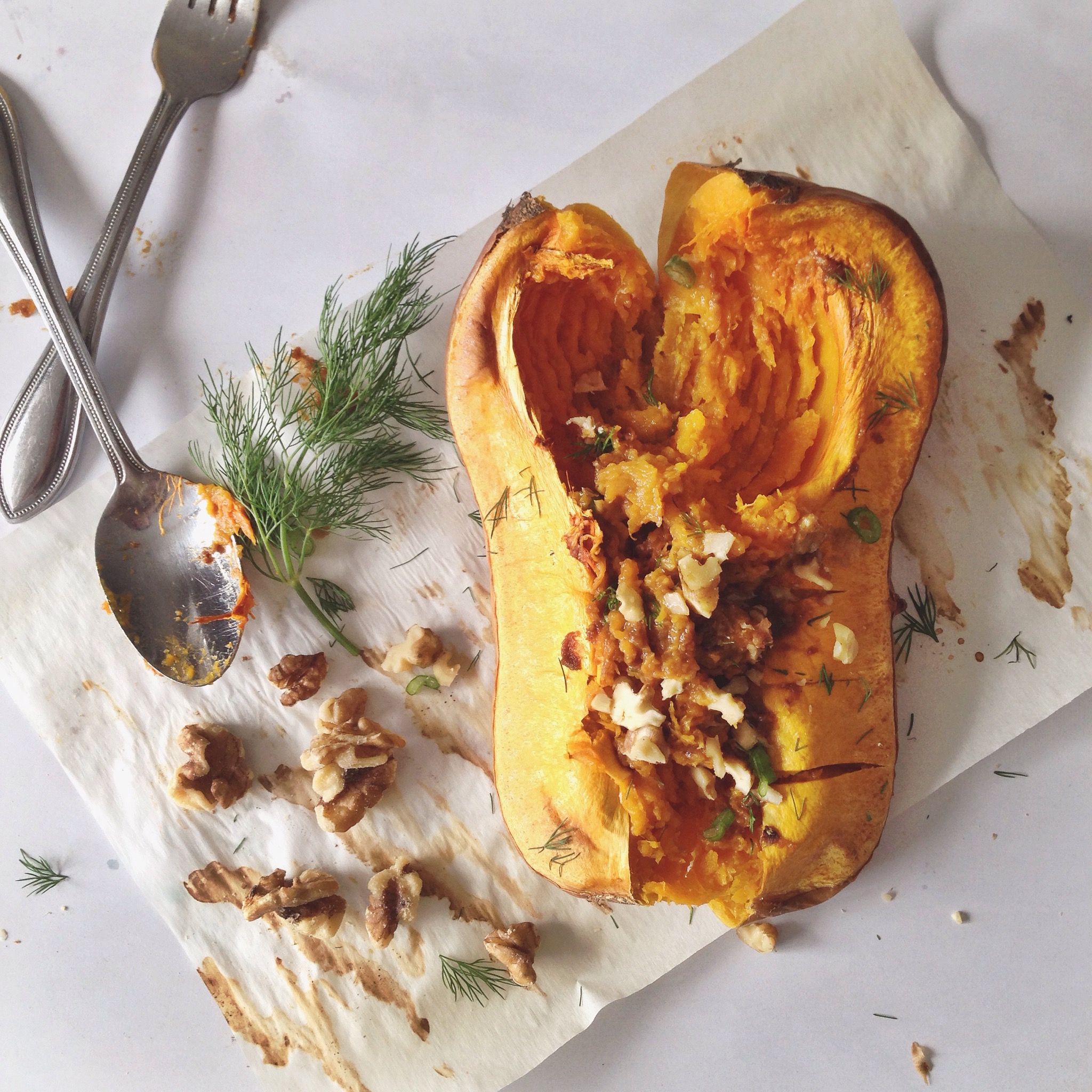 So…why not just stick them whole in the oven? Why am I always daunting myself with the task of peeling and dissecting the beautiful butternut? I have no idea. But from now on I’m just sticking it in the oven and roasting it in its entirety. Problem solved!