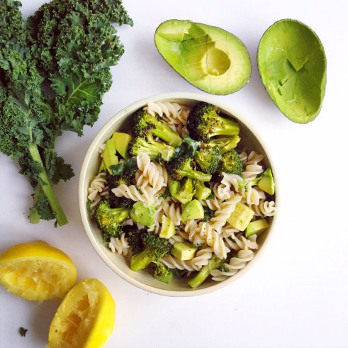 Add your avocado chunks, roasted broccoli and kale (or other greens) to your pasta bowl and mix.