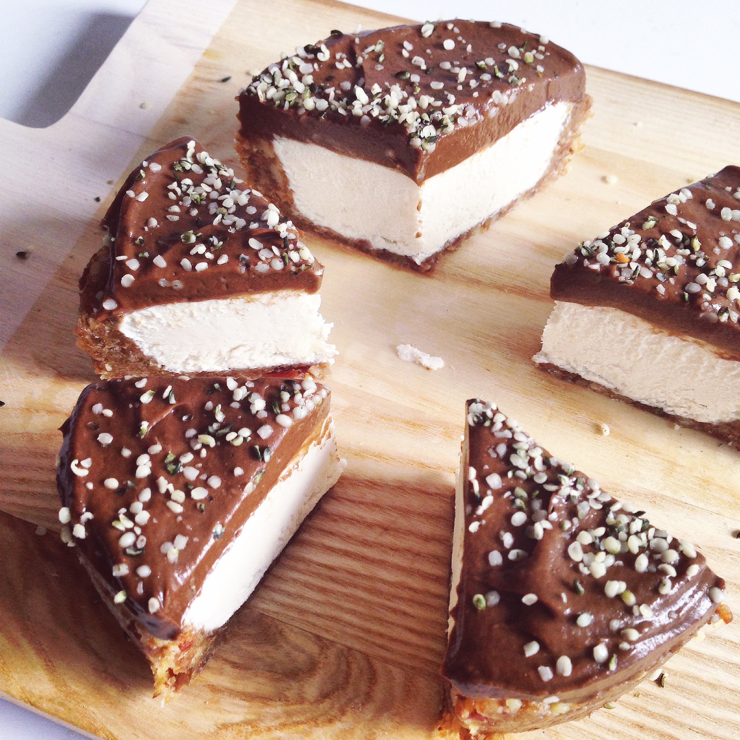 Spread your ganache, as thick or as thin as you like, over the top of the cake and sprinkle with hemp hearts if desired (coconut flakes would go well too!) A pinch of salt sprinkled over the top wouldn’t hurt either… 😉