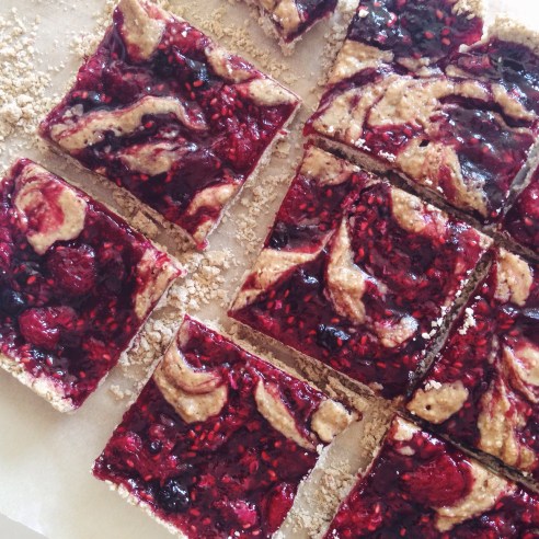 Drizzle the nut butter if thin enough, or drop spoonfuls of it over your berry filling. Drag a butter knife through the nut butter to swirl it into the jam.