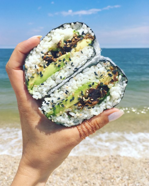 • nori – I’m using SeaSnax nori! This stuff is SO fresh. They sent me a box of goodies to test out and their raw nori folded up like a DREAM 💕 (and the little boxes of toasted nori sheets are incredibly addictive – perfect beach/ hiking/ camping/ anytime snack)