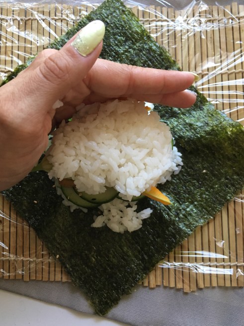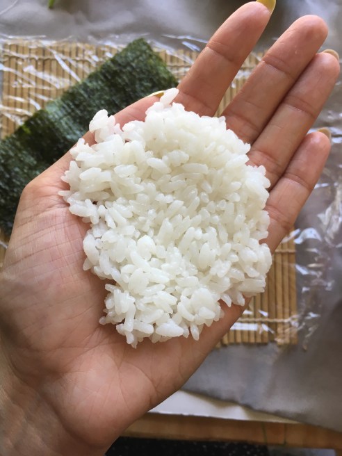 • sushi rice (cooked already, cooled a bit and seasoned with rice vinegar)