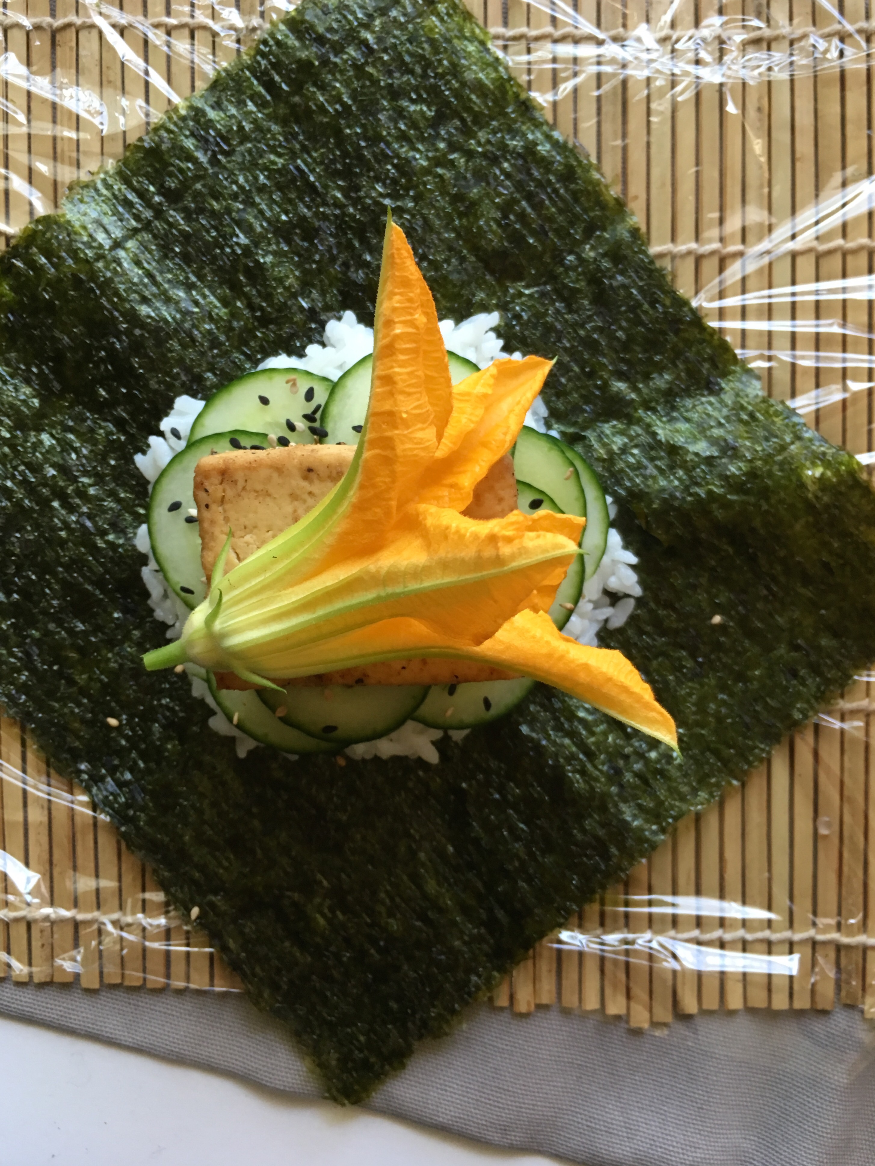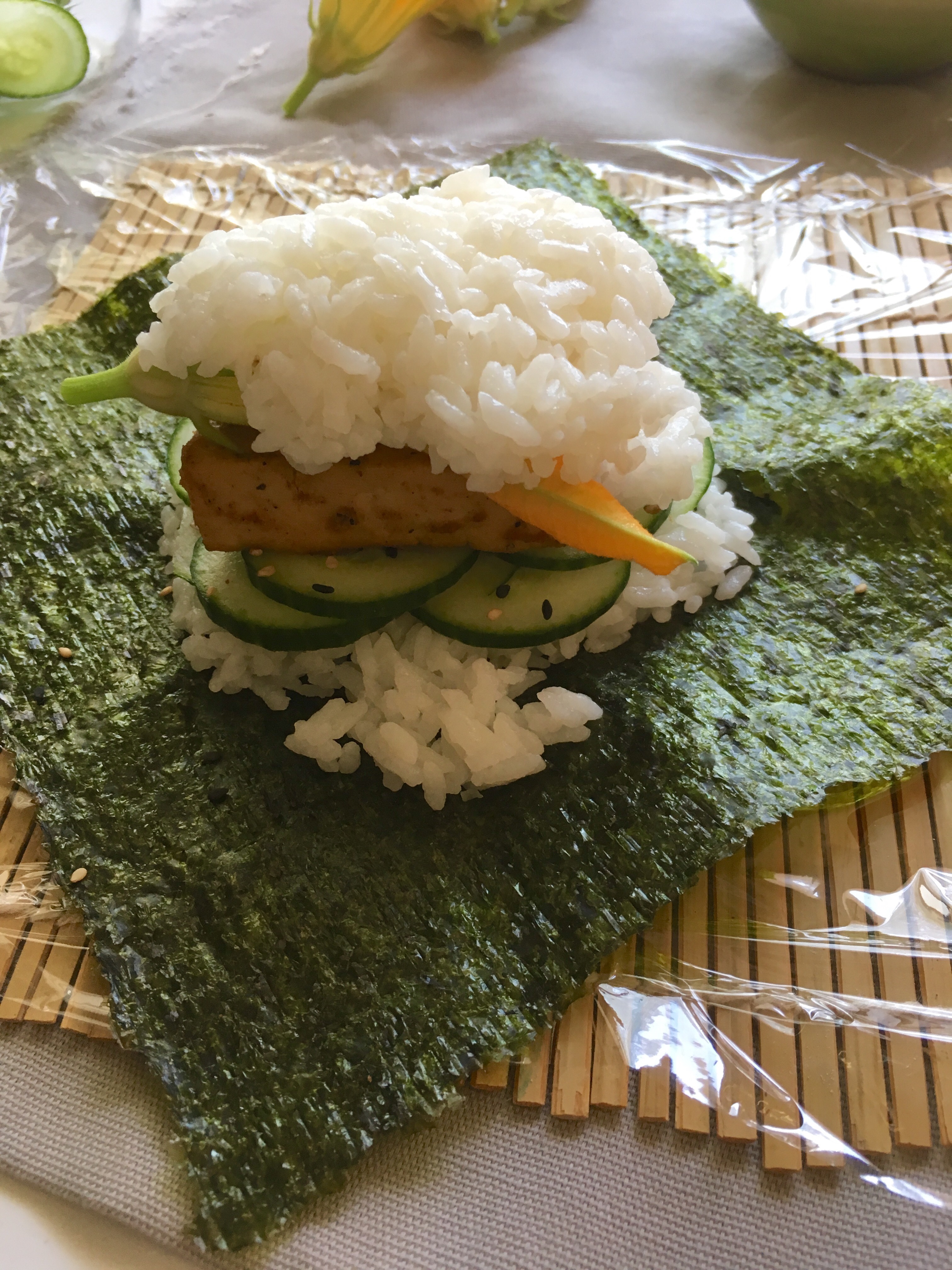 • sushi rice (cooked already, cooled a bit and seasoned with rice vinegar)