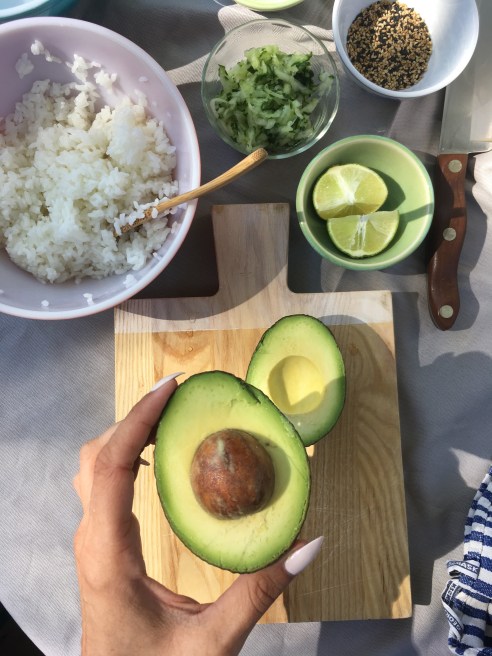 I’m using avocado and shredded cucumber to stuff these first ones.
