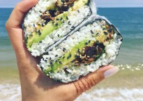 Sushi sandwiches – my favorites way to stuff a bunch of goodies into a ball of sushi rice and wrap it tightly in nori for easy transportation to the beach.