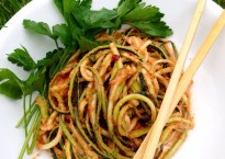 Less of a typical “sauce”. Think gazpacho. Actually, I ate the rest of it like gazpacho so… Summery, light and fresh. I made zucchini noodles (zoodles)…